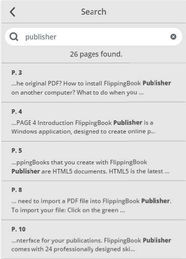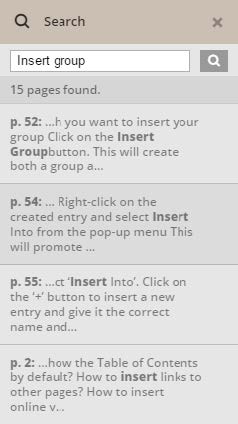 , then it’s possible to do a fulltext search there. If you click on a button and enter a search query in the field, the results will be listed on a side panel and the search term will be highlighted where it appears on the pages: