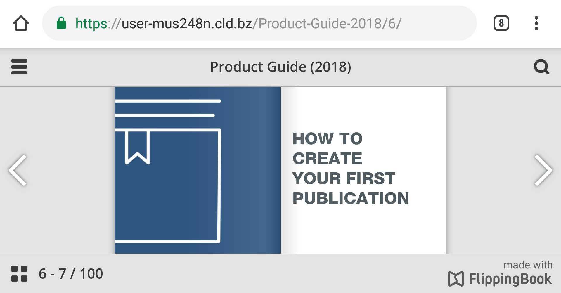 In the mobile version, a book is shown in a one-page mode by default, but if your phone/tablet goes into the landscape mode, two pages will be shown at the same time: