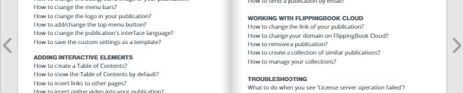The pages of a book can be turned by clicking the navigation arrows at the sides of the pages: