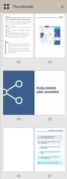 you can open a side panel with previews of all book pages that allow you to select a specific page if you have its visual in mind: